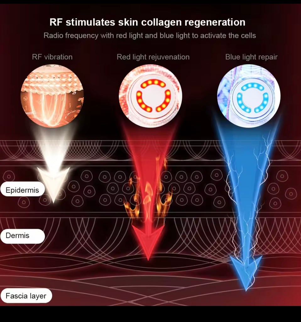 Discover the secret to rejuvenated, radiant skin with this innovative 4-in-1 device. Designed to lift, firm, and revitalize your face, this massager combines radiofrequency (RF), EMS, and LED light technology to give you visible results from the comfort of your home.